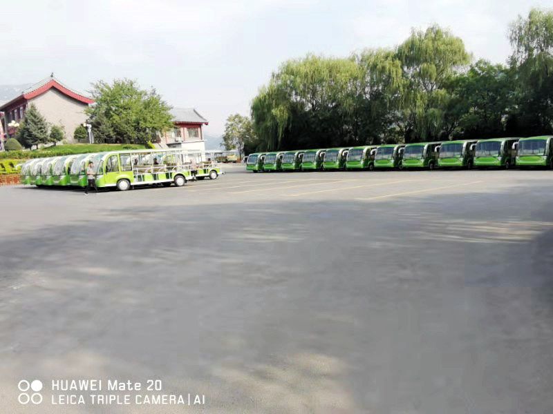 少林寺景區(qū)十一期間新采購70臺益高觀光車,其中包括50臺23座電動觀光車,10臺14座電動觀光車,10臺14座燃油觀光車,累計采購益高多種車型達300余臺。